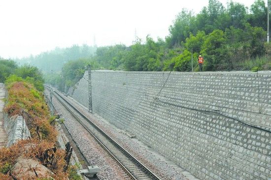 铁路重建单位选择了生态格网挡墙对铁路进行防护,铁路沿线的土坡防护采用重力式生态格宾网挡墙。生态格网结构满足工程的力学性能,具有适应地基变形能力,整体性好。填石之间的空隙有利于植物的生长,有利于周围的环境生态,同时有减少噪音的功能。